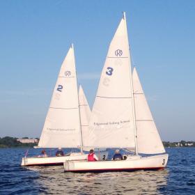 The Edgewood Sailing School Adult Program offers sailing lessons to adults of all ages on a well-maintained fleet of Rhodes 19 keelboats. Classes are scheduled from June through September. A class typically meets six times over three weeks.
