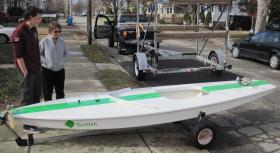Jim Fraser, ESS board President, handing over the papers, with Catherine, the ESS Sunfish Instructor, said, "You know, landing this raffle prize with one of our own Edgewood Sailing School sailors is wonderful because it advances the fun and skills of sailing with families right here at Edgewood. The School's tradition, more than 50 years of teaching, is part of the story of the Edgewood Yacht Club and the neighborhood here along the top of Narragansett Bay. We're happy to have Aidan starting out with the new boat; the first of many things Edgewood has planned for an exciting 2015 sailing season."